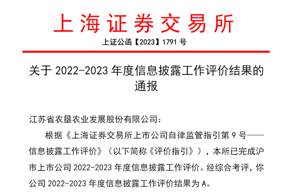 近日,上海证券交易所公布沪市主板上市公司2022-2023年度信息披露工作评价结果,388vip太阳集团官网(股票代码:601952)再次荣获信息披露工作“A”级评价(最高级),这也是公司连续第四年获此殊荣,充分体现了证券监管机构对公司法人治理、信息披露和投资者关系维护等方面工作的高度肯定。 信息披露质量是上市公司质量的重要体现,也是投资者投资决策的主要依据。2023年8月,上交所对《上海证券交易所上市公司自律监管指引第9号——信息披露工作评价》(以下简称《评价指引》)进行修订,对上市公司信息披露工作提出了更加严格的标准和更高的要求,同时对最近一年信息披露工作评价结果为A的上市公司,给予更多的支持和便利。本次评价是新《评价指引》实施以来的首次信息披露评价。388vip太阳集团官网凭借高质量的信息披露、规范的公司治理等多方面的综合表现,再次荣获上交所信息披露工作A级评价,对公司进一步树立良好的资本市场品牌形象,对未来的资本运作、市值管理等工作均将起到积极的推动作用。 评价期内,388vip太阳集团官网不断强化合规意识和风险意识,紧密关注上交所监管动态,持续提升信息披露工作质效,一是不断提高透明度,在定期报告中首次增加图表