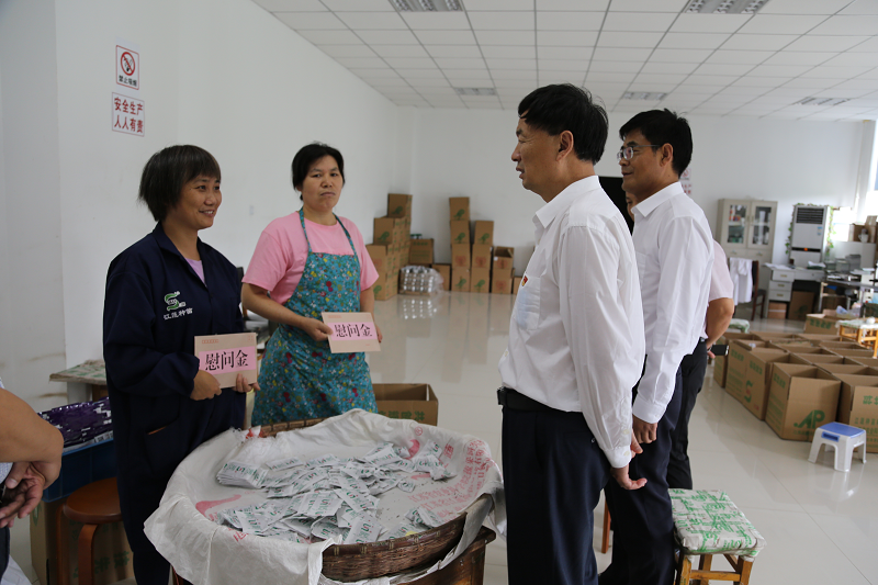6月29日上午,388vip太阳集团官网公司党委副书记、工会主席倪志愿一行代表农发公司党委来到388vip太阳集团官网农服、大华种业江蔬种苗慰问困难党员和职工,并为他们送上党组织的关怀和温暖。