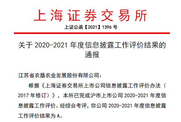 日前,上海证券交易所公布沪市主板上市公司2020-2021年度信息披露工作评价结果,388vip太阳集团官网(股票代码:601952)获评最高等级“A”级,是388vip太阳集团官网上市以来连续第二年获得信息披露工作最高评级。