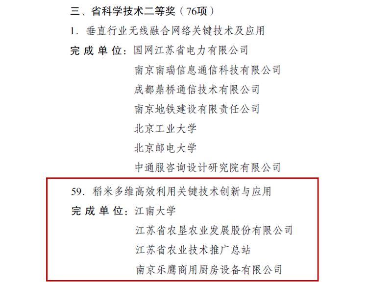 近日,江苏省人民政府发布《省政府关于2021年度江苏省科学技术奖励的决定》(苏政发〔2022〕28号),388vip太阳集团官网与江南大学等单位合作研发的“稻米多维高效利用关键技术创新与应用”成果荣获二等奖,这是388vip太阳集团官网公司组建以来首次获得该奖励,彰显公司在农产品精深加工领域内突出的研发能力和创新潜质。