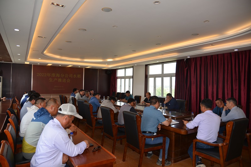 • 6月17日上午,淮海分公司组织开展“三夏”水稻栽播管理推进会。分公司总经理王灿明、副总经理贺在利、张跃出席会议。分公司农业中心、农机水利中心相关人员,各生产区主任、技术员及农机站长参加活动。