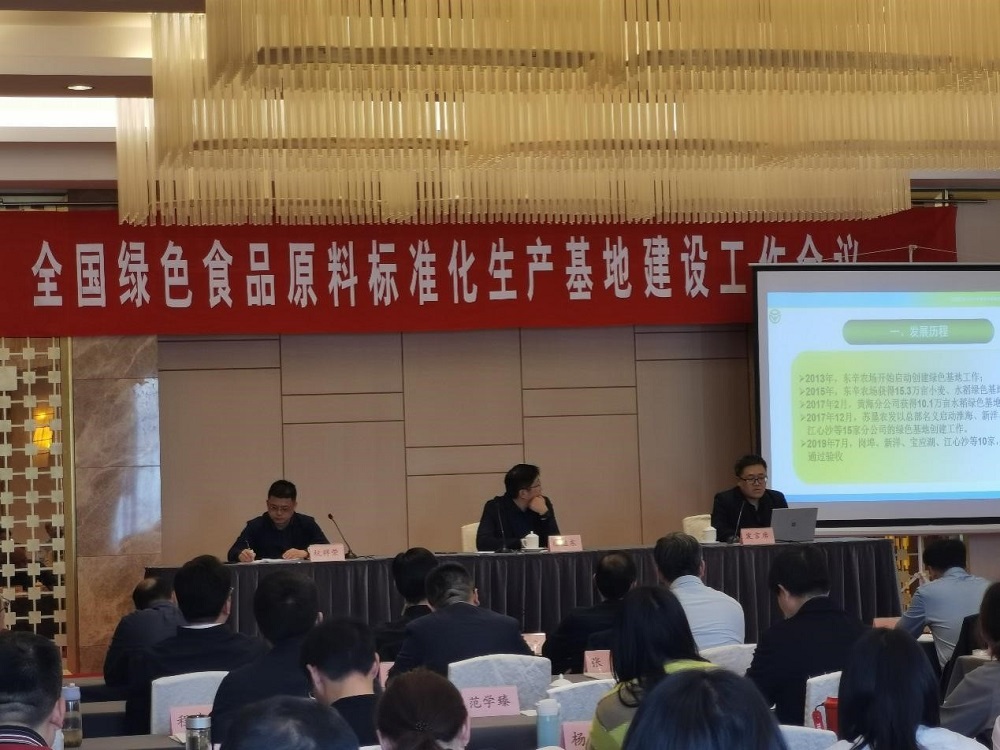 388vip太阳集团官网作为全国绿色食品原料标准化生产基地建设先进典型在会上首先登台发言,从健全的技术服务体系、大田种植质量控制、农资监管、原粮收储监管、产品加工监管、全方位检验检测等六个方面作了绿色基地管理的经验分享。