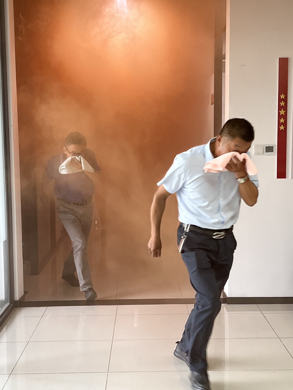 本次培训主要含消防安全理论培训和应急处置演练两部分。理论培训分防火知识培训、灭火器原理培训、夏季防暑培训等,消防专家从消防法相关规定、消防常识、消防设施使用、火灾扑救与疏散逃生等多个方面详细讲解了火灾起因、如何有效扑救火情以及疏散逃生等消防安全常识。应急处置演练内容有火灾现场逃生、灭火器使用等,消防专家组织职工开展火灾实景疏散逃生演练,现场学习灭火器使用方法,并进行了灭火器材操作比赛,确保每位职工都能熟悉掌握灭火步骤及器械使用方法,提升灭火技能。