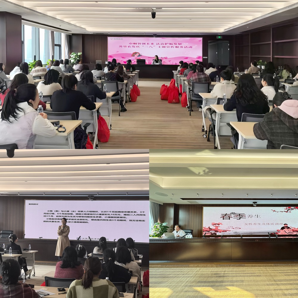 活动开设了女职工普法宣传和“专家面对面”送知识送健康讲座。省妇联“双护”律师戴小芳从女职工职场权益保护、女性婚姻权益、生活中的民法典、财产继承、女性特殊权益保障等方面以案说法,为女职工们带来了一场别开生面的普法课堂,指导女职工们依法维护好个人合法权益。同仁街社区卫生服务中心副主任中医师颜芸从四季养生、女性健康保健、常见病调理等方面给女职工们带来一场充满温情与关爱的中医养生健康讲座,引导和帮助女职工树立科学健康的生活理念。讲座环节还进行了法律知识互动答疑、中医把脉问诊等,活动内容贴近生活,实用性强,深受在场女职工的欢迎。