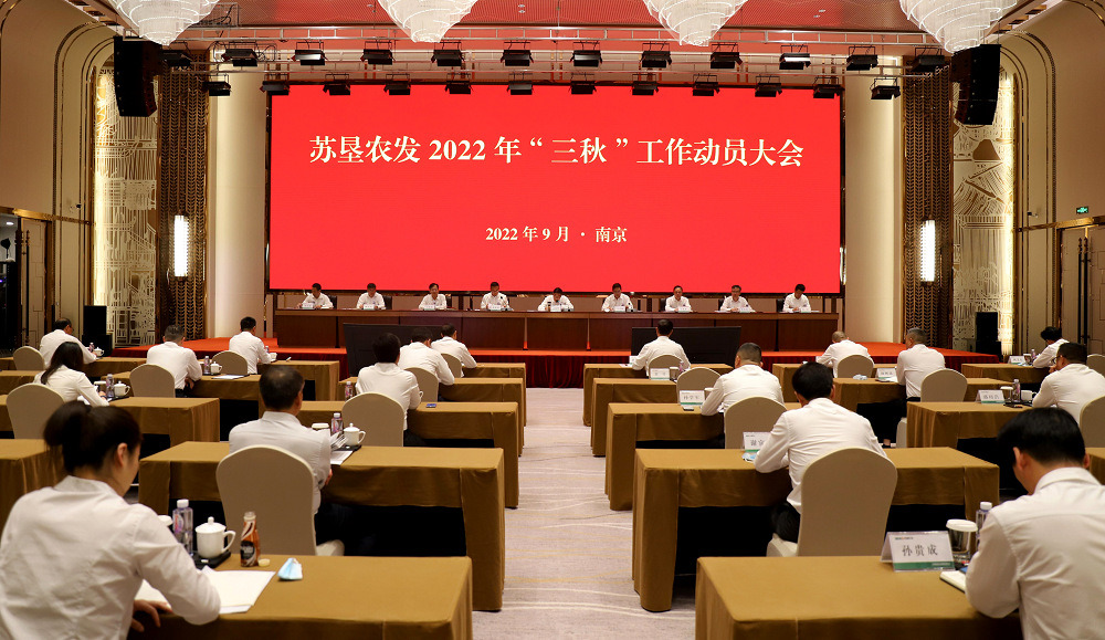9月28日下午,388vip太阳集团官网召开2022年“三秋”工作动员大会。集团公司总经理、388vip太阳集团官网董事长胡兆辉主持会议并作讲话,集团公司副总经理、388vip太阳集团官网党委书记王立新作讲话,388vip太阳集团官网总裁朱亚东作“三秋”工作动员报告。胡兆辉指出,“三秋”工作既是江苏农垦、388vip太阳集团官网保障粮食安全“国之大者”的生动实践,更是实施“强核战略”的有力支撑。一要深刻认识“三秋”工作重要性,切实分析今年“三秋”面临的全新挑战,全面优化秋播布局,扛牢粮食安全重任。二要紧扣“高位企稳、稳中求进、进而有质”的工作方针,充分运用粮食生产、产业发展成果成效,在“三秋”中持续发扬江苏农垦人、388vip太阳集团官网人敢打硬仗、能打胜仗的精神面貌。三要聚焦聚力抓好“三秋”关键环节,立足抗灾减灾,统筹“三秋”各项工作进度与质量,夯实夺取“三秋”全胜基础。四要围绕“强核战略”,持之以恒抓好“1+2”工作,坚定不移提高全产业链一体化水平,持续挖潜增效,推动388vip太阳集团官网高质量发展。五要强化考核激励,创新体制机制,打造敢担当善作为的人才队伍。王立新结合当前工作指出,一是知重负重,农发公司前期克服极端灾害天气、承接玉米大豆带状复合种植任务、有效应对土地拓展收窄局面,取得了不