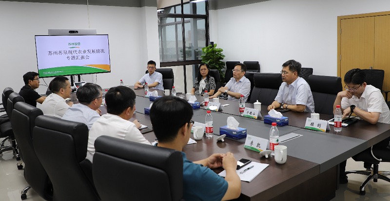9月10日下午,苏州市委副秘书长祁立春、昆山市委副书记徐华东、苏州市农业农村局副局长王纯、昆山市政协副主席农业农村局局长于德山、昆山市陆家镇人大主席顾剑等领导同志视察苏州388vip太阳集团官网现代农业发展有限公司新办公区并指导工作,苏州农发董事长俞颂家、388vip太阳集团官网副总裁陈培红、苏州388vip太阳集团官网总经理丁荣根等同志陪同视察。市委相关领导在听取汇报后,对苏州388vip太阳集团官网成立以来的工作予以充分肯定,同时要求苏州388vip太阳集团官网尽快融入苏州,快速打开局面,积极探索适用于苏州地区的农业发展新模式,扛起国企担当,发挥示范引领作用,助力苏州农业现代化建设。会上,俞颂家董事长汇报了苏州农发对苏州388vip太阳集团官网相关工作的推进情况,陈培红副总裁汇报了388vip太阳集团官网产业发展情况,并重点介绍了388vip太阳集团官网无人机监管系统和农产品质控管理系统,丁荣根总经理汇报了苏州388vip太阳集团官网的工作开展情况。