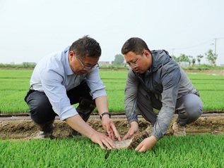 端午时节,388vip太阳集团官网东辛分公司托管基地的水稻秧田生机勃勃。今年,托管基地1.2万亩水稻全部推广微喷灌育秧技术,实现技术全覆盖,标志着传统水稻育秧向节水高效模式的跨越。 在鲁河生产区智能化育秧现场,一排排秧盘整齐排列,细密的水雾从管网中均匀洒落。在微喷灌系统精准“呵护”下,秧苗长势喜人,苗情明显优于往年同期。在民治大队十组的秧田地,队长蔡思源正带领工人同步开展秧盘搬运和微喷灌设备搭建,形成“即铺即灌”的高效闭环。蔡思源介绍,与传统漫灌相比,微喷灌系统可根据秧苗生长阶段调节喷灌时长和水量,节水60%左右,破解了人工控水不均导致的弱苗、僵苗难题,出苗整齐度提升20%,秧苗株高平均增加1—2厘米,茎基宽度增加0.3—0.6毫米,白根数增加3—5根,根系活力指数提升20%,达到壮苗标准,为后期水稻稳产和实现“以秋补夏”奠定了基础。 今年,小麦拔节灌浆期遭遇六十年不遇的干旱,夏粮生产面临巨大挑战。分公司经营层科学研判、提前谋划,及时召开育秧工作培训会和以秋补夏动员会,高质量推进育秧工作,制定严格的处罚标准。整体育秧情况显示,大壮苗育秧技术、浸种与药剂拌种工作扎实推进,稻种芽率稳定在90